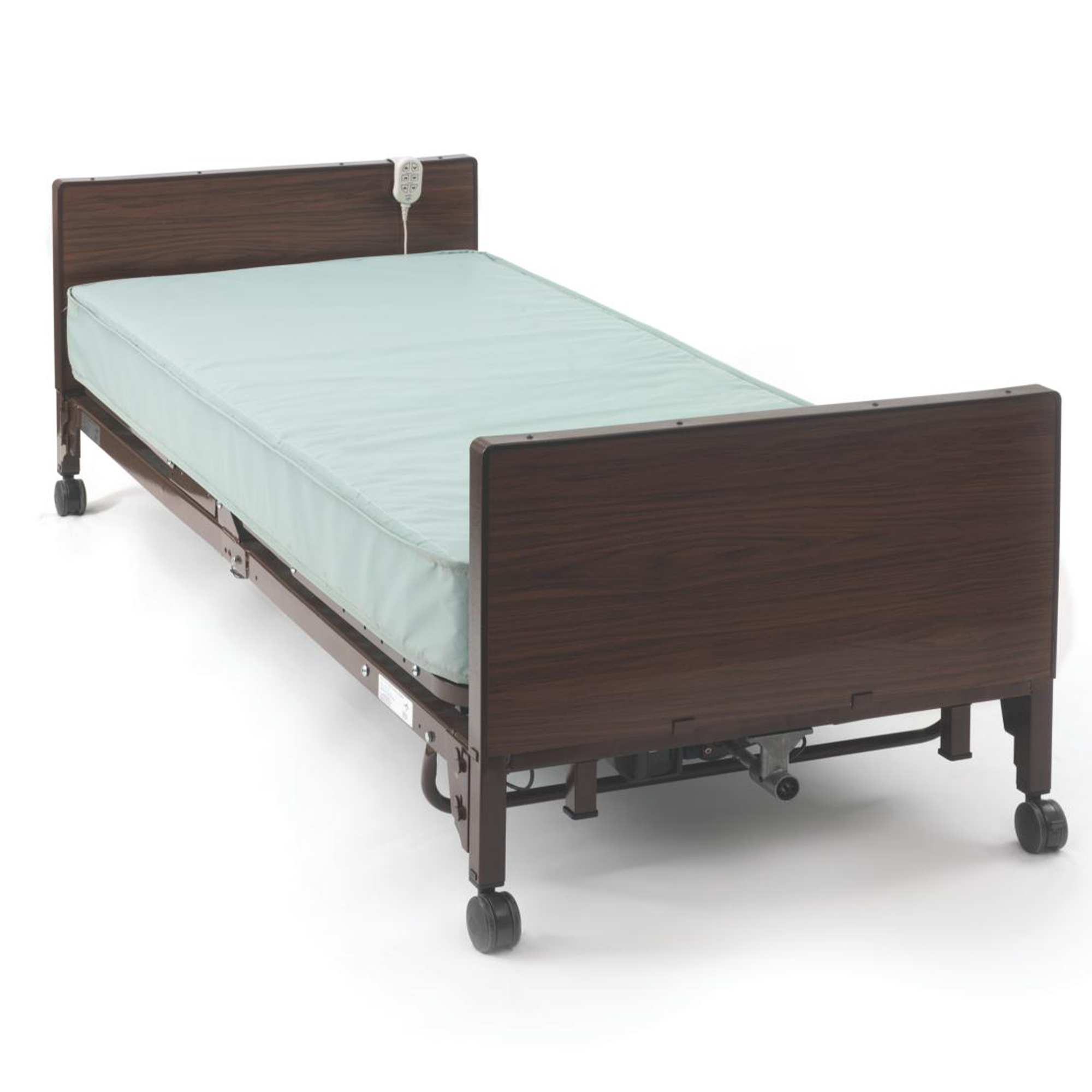 Malibu Semi-Electric Hospital Beds have (2) two motors: one for the back, and one for the legs. Fully-Electric Hospital Beds have (3) motors: one that also elevates the whole bed up and down. The 3rd motor Hi-Lo options is good to get the patient in the all the way up position to make it easier for the caregiver; and to help the patient get in and out of bed, and to transfer to a wheelchair or walker. Low Hospital Beds are available. 5-Motor Hospital Beds are available with Trendellenburg and Reverse Trendellenburg.Half-Rails and Full Rails are available. Standard Vinyl-Covered Mattresses, Deluxe Multi-Layered, Air and Latex Mattresses are available. |